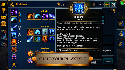 Whirlwind、Shockwave、Arc Lightning、Blizzardなどの素晴らしい攻撃能力を解き放ち、Frost Nova、Vortex、Silenceで敵の群集を制御するか、Smokescreen、Traps、Snipeでこっそり暗殺します。