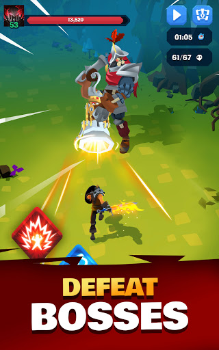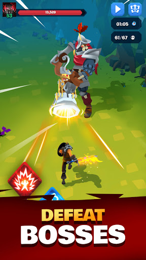 FRANTIC ONE-THUMB GAMEPLAYスマートフォンを手に取り 、タップしてスラッシュします。熱狂的なペースで野生の乱闘を体験してください!ゴブリン、スケルトン、バンシー、そしてあらゆる種類の恐ろしい生き物を通り抜けて戦いましょう。 征服する素晴らしい世界浮かぶ城の見事な世界、