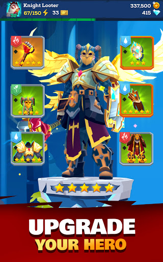 ヒーローに最高の装備を装備してください:剣、斧、盾、ヘルメット、チェストなど。この果てしなく壮大な戦いの冒険で、城を襲撃し、ダンジョンを這い回り、モンスターのボスを粉砕してますます略奪します。