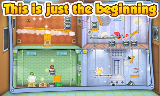 すぐにわかるように、このタスクは気の弱い人向けではありません。 Robyは、ベルトコンベアの移動、足場の吊り下げ、箱の爆発、すべての金属物体(ロボットを含む)を磁場にすばやく引き付ける巨大な磁石を使用するか、乱用する必要があります。